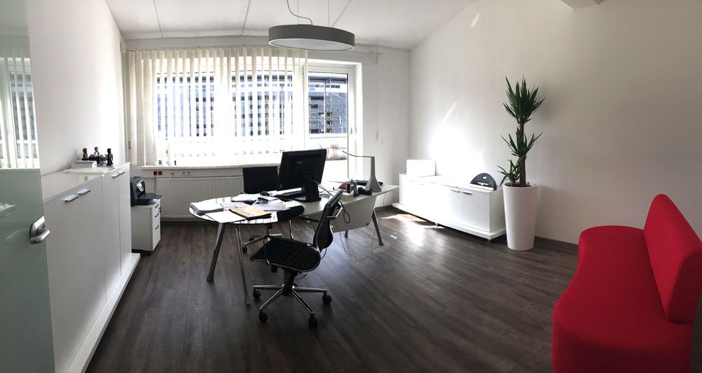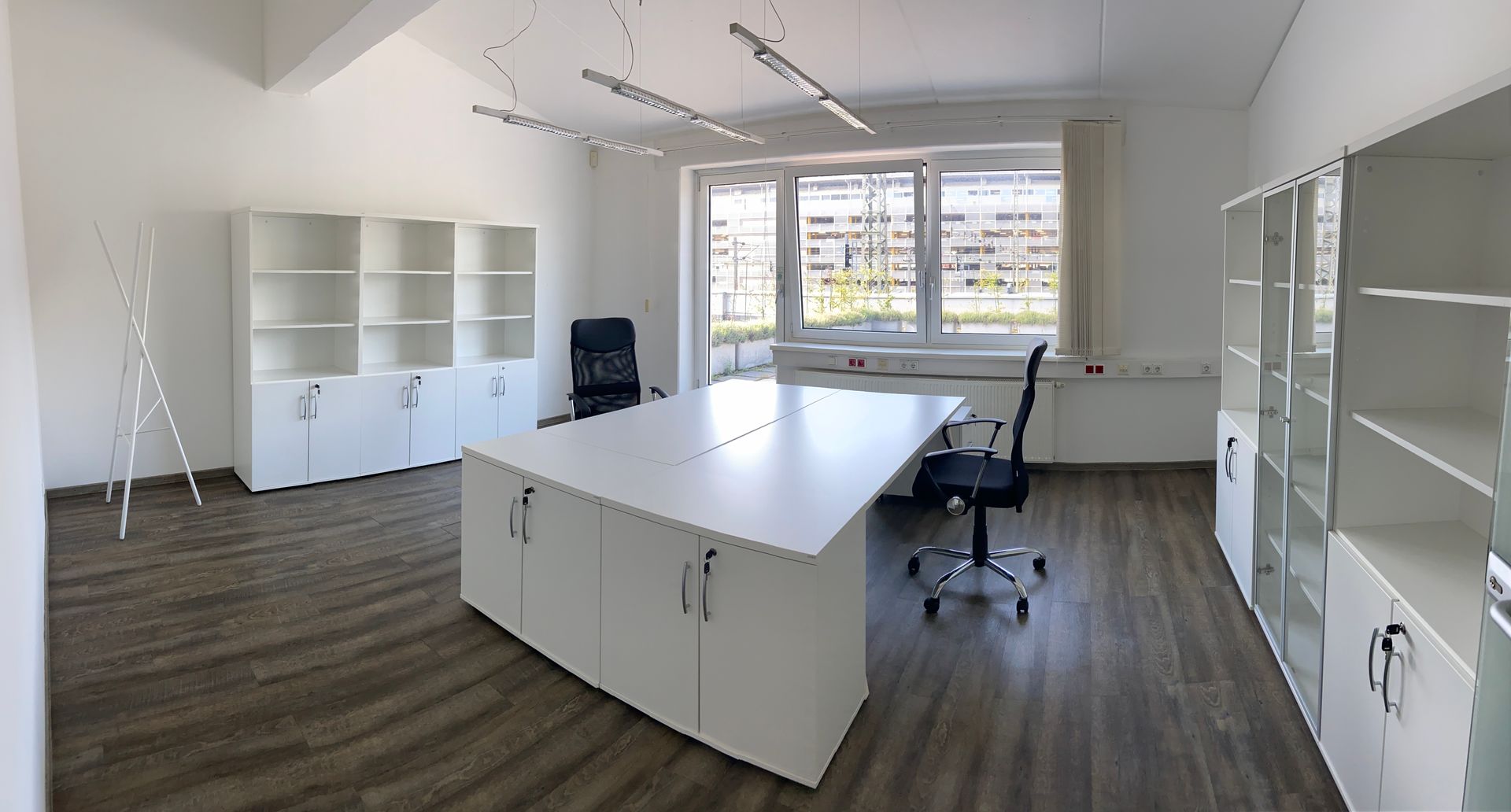Nachfolgend ein paar Eindrücke von den Büros und dem Empfangsbereich. Es stehen sowohl Büros nordseitig mit Blick auf das Allianzstadion sowie südseitige Büros mit direktem Ausgang auf die riesige Dachterrasse zur Vermietung. Einen allgemeinen Ausgang zur Terrasse gibt es von der Küche, welche somit allen Mietern zur Benützung frei steht.